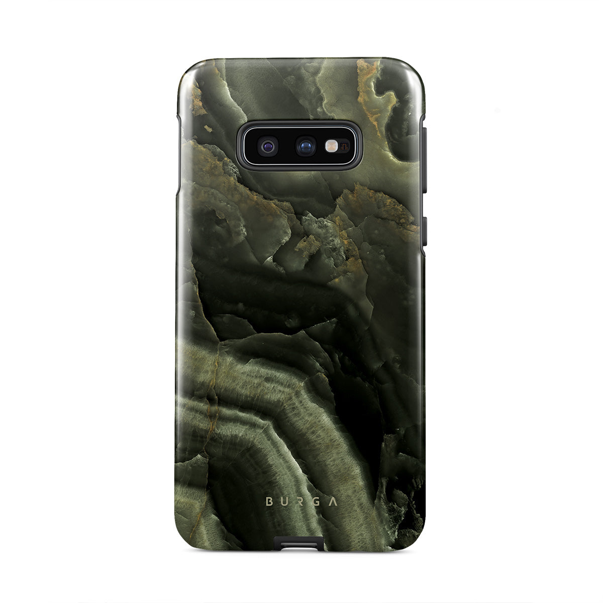 Carry the mystery of unexplored land found in an ominous misty forest with a green marble Samsung Galaxy S10E phone case inspired by it. The case combines the popular marble trend with heavy-duty protection becoming a unique companion to your device.