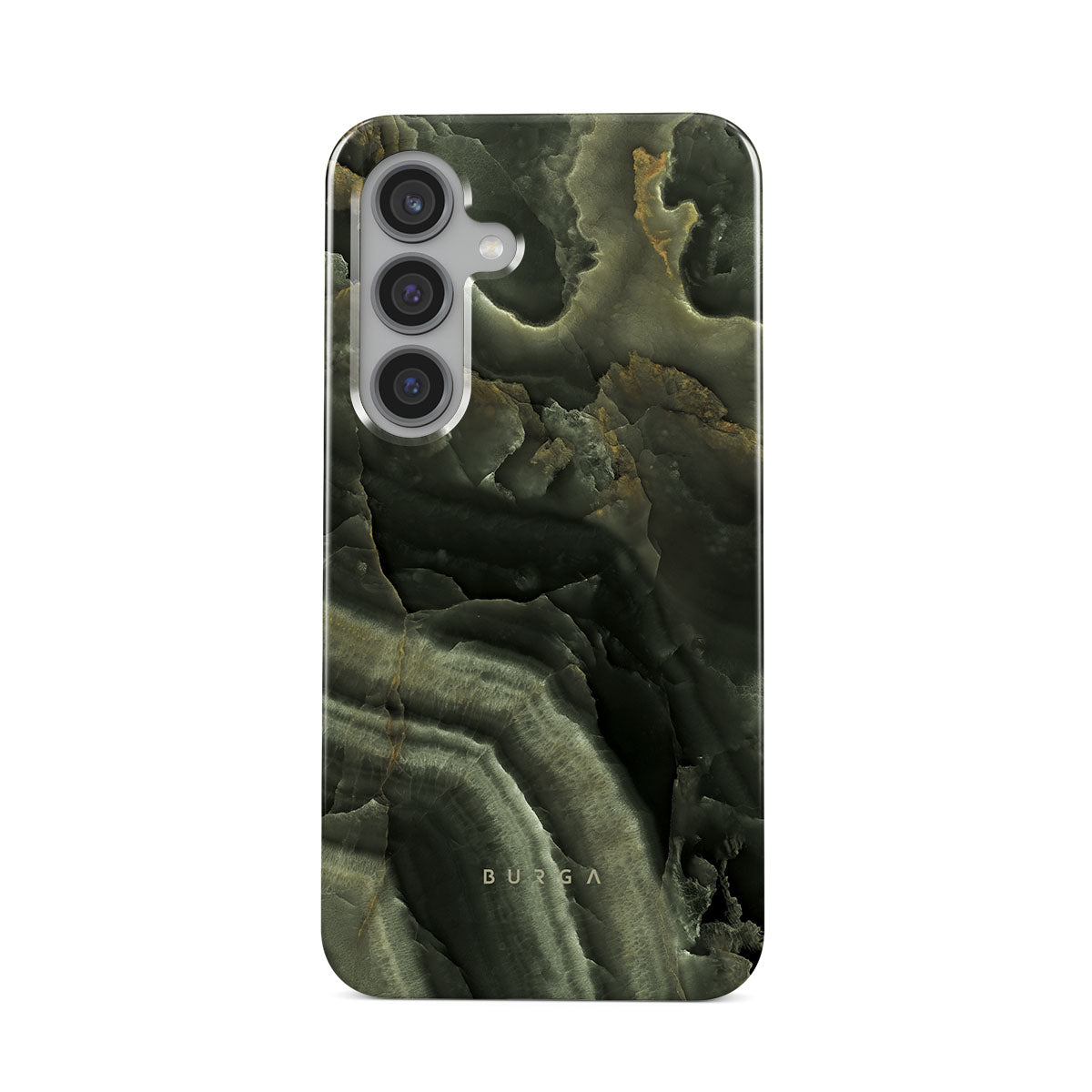 Carry the mystery of unexplored land found in an ominous misty forest with a green marble Samsung Galaxy S24 Plus phone case inspired by it. The case combines the popular marble trend with heavy-duty protection becoming a unique companion to your device.
