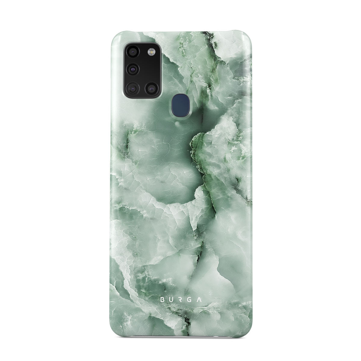 Our Pistachio Cheesecake Samsung Galaxy A21s 4G phone case is inspired by the soft green color of pistachios. The marble pattern never goes out of style, and reimagined design with pastel green and white swirls offers a designer feel. Such a hard-shell case will provide heavy-duty protection while adding a touch of pastel to your collection.