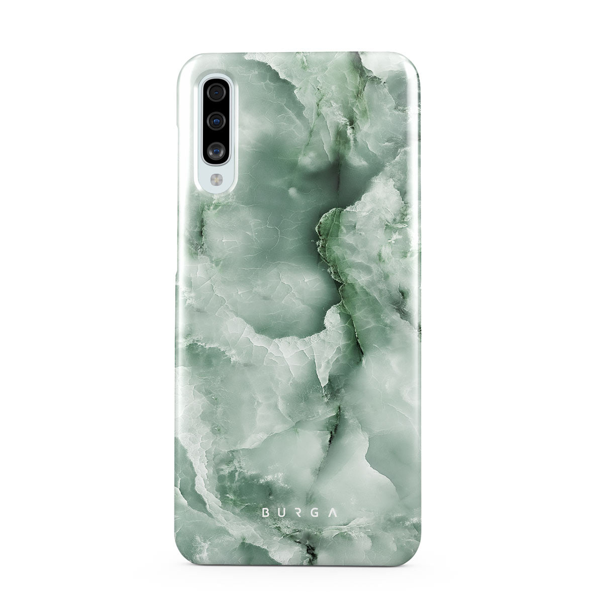 Our Pistachio Cheesecake Samsung Galaxy A50 phone case is inspired by the soft green color of pistachios. The marble pattern never goes out of style, and reimagined design with pastel green and white swirls offers a designer feel. Such a hard-shell case will provide heavy-duty protection while adding a touch of pastel to your collection.