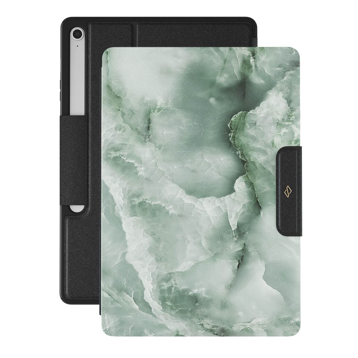 Our Pistachio Cheesecake Samsung Galaxy Tab S10+ FE folio case is inspired by the soft green color of pistachios. The marble pattern never goes out of style, and reimagined design with pastel green and white swirls offers a designer feel. Such a hard-shell case will provide heavy-duty protection while adding a touch of pastel to your collection.