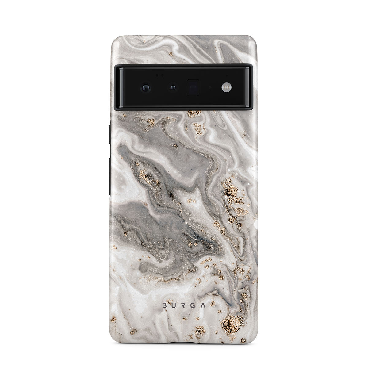 The wind outside is playing his songs. Some fear, some love, and some simply enjoy. But do not be afraid, with our grey marble Google Pixel 6 Pro phone case inspired by a beautiful snowstorm, you can have the pretty part of it without any coldness. And as the case offers heavy-duty protection, your phone will also be safe and sound!