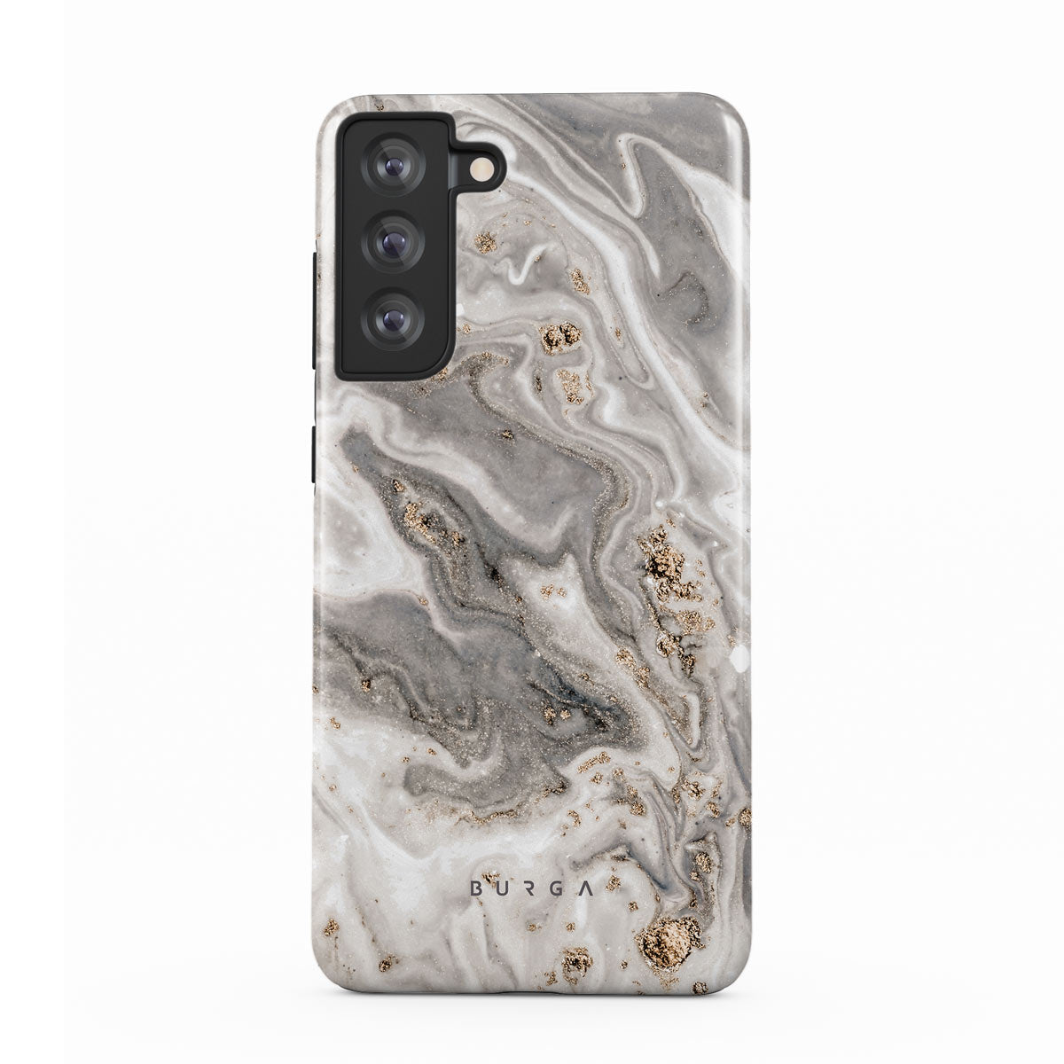 The wind outside is playing his songs. Some fear, some love, and some simply enjoy. But do not be afraid, with our grey marble Samsung Galaxy S21 FE phone case inspired by a beautiful snowstorm, you can have the pretty part of it without any coldness. And as the case offers heavy-duty protection, your phone will also be safe and sound!