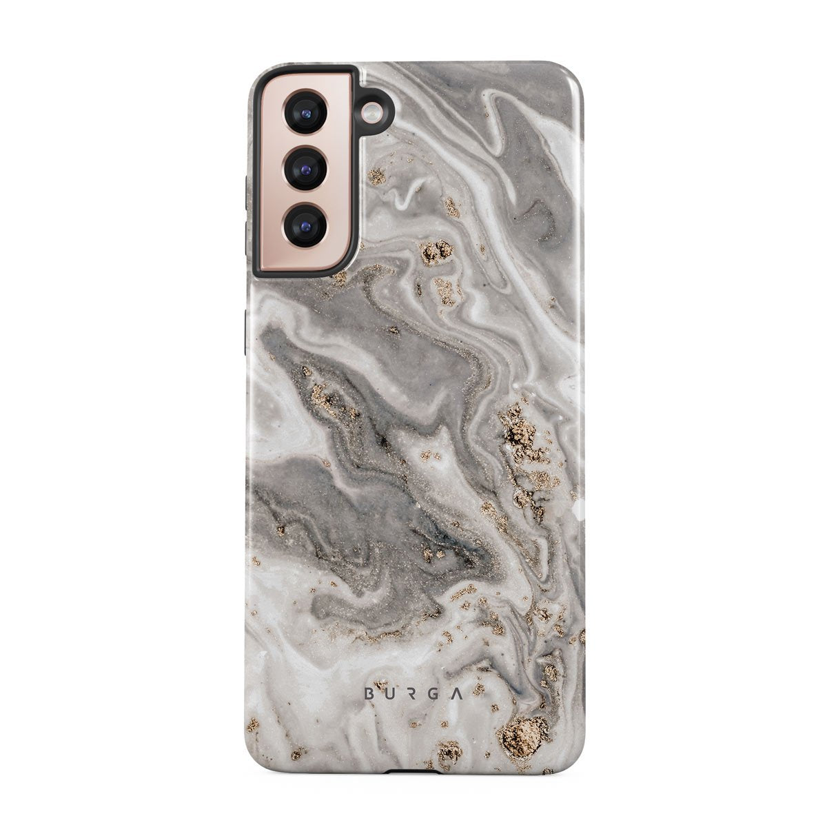 The wind outside is playing his songs. Some fear, some love, and some simply enjoy. But do not be afraid, with our grey marble Samsung Galaxy S21 Plus phone case inspired by a beautiful snowstorm, you can have the pretty part of it without any coldness. And as the case offers heavy-duty protection, your phone will also be safe and sound!