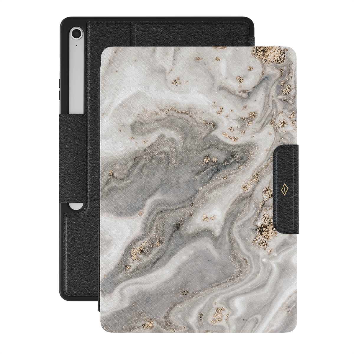 The wind outside is playing his songs. Some fear, some love, and some simply enjoy. But do not be afraid, with our grey marble Samsung Galaxy Tab S10+ FE folio case inspired by a beautiful snowstorm, you can have the pretty part of it without any coldness. And as the case offers heavy-duty protection, your Galaxy Tab will also be safe and sound!