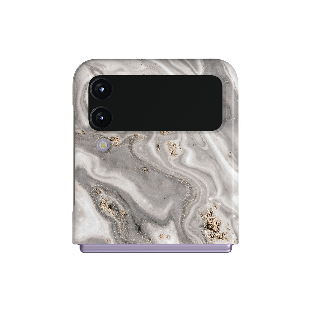 The wind outside is playing his songs. Some fear, some love, and some simply enjoy. But do not be afraid, with our grey marble Samsung Galaxy Z Flip 4 phone case inspired by a beautiful snowstorm, you can have the pretty part of it without any coldness. And as the case offers heavy-duty protection, your phone will also be safe and sound!