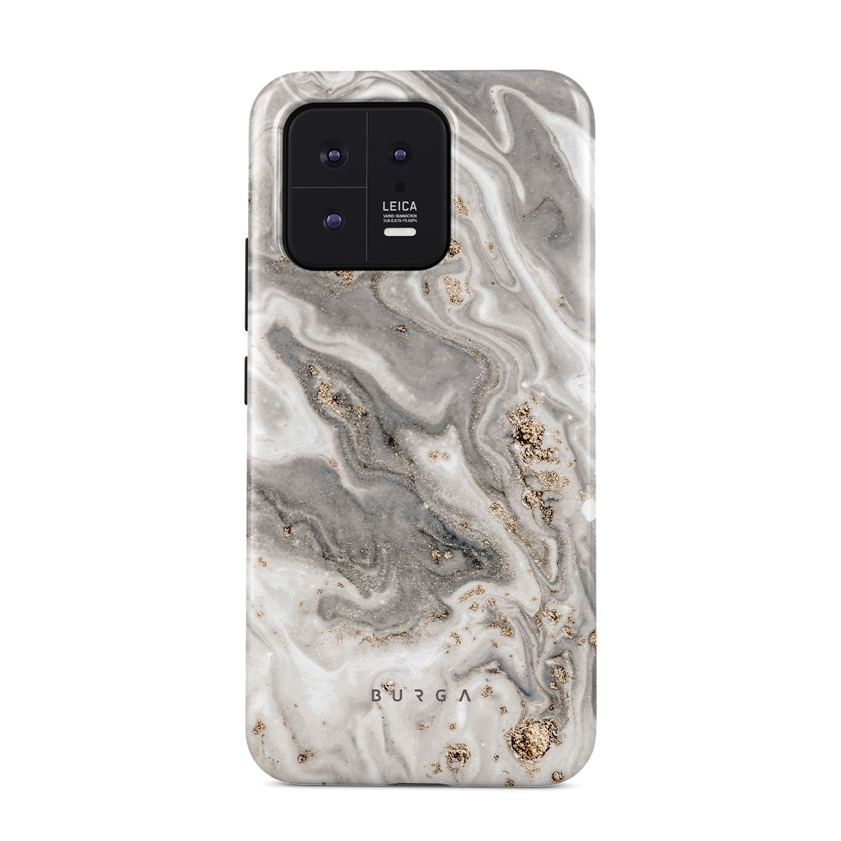 The wind outside is playing his songs. Some fear, some love, and some simply enjoy. But do not be afraid, with our grey marble Xiaomi 13 phone case inspired by a beautiful snowstorm, you can have the pretty part of it without any coldness. And as the case offers heavy-duty protection, your phone will also be safe and sound!