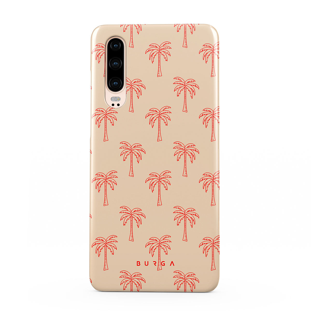 Retreat into the serene whispers of our Happy Hour design. Gentle pink palms sway on a soothing blush background, creating images of a tranquil paradise. This Huawei P30 phone case is perfect for dreamers and nature lovers who seek a daily escape into tranquility.