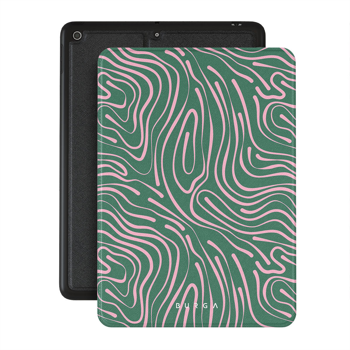 Fresh and mesmerizing, our Hawaiian Breeze iPad 10.2 (9th/8th/7th Gen) folio case design combines a pastel pink wavy pattern with a crisp green background creating a refreshing look. The abstract pattern will indeed become a star in your accessorizing game, while the iPad case will keep your device protected at all times!