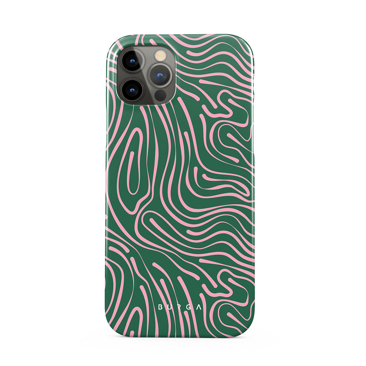 Fresh and mesmerizing, our Hawaiian Breeze iPhone 12 Pro Max phone case design combines a pastel pink wavy pattern with a crisp green background creating a refreshing look. The abstract pattern will indeed become a star in your accessorizing game, while the phone case will keep your device protected at all times!