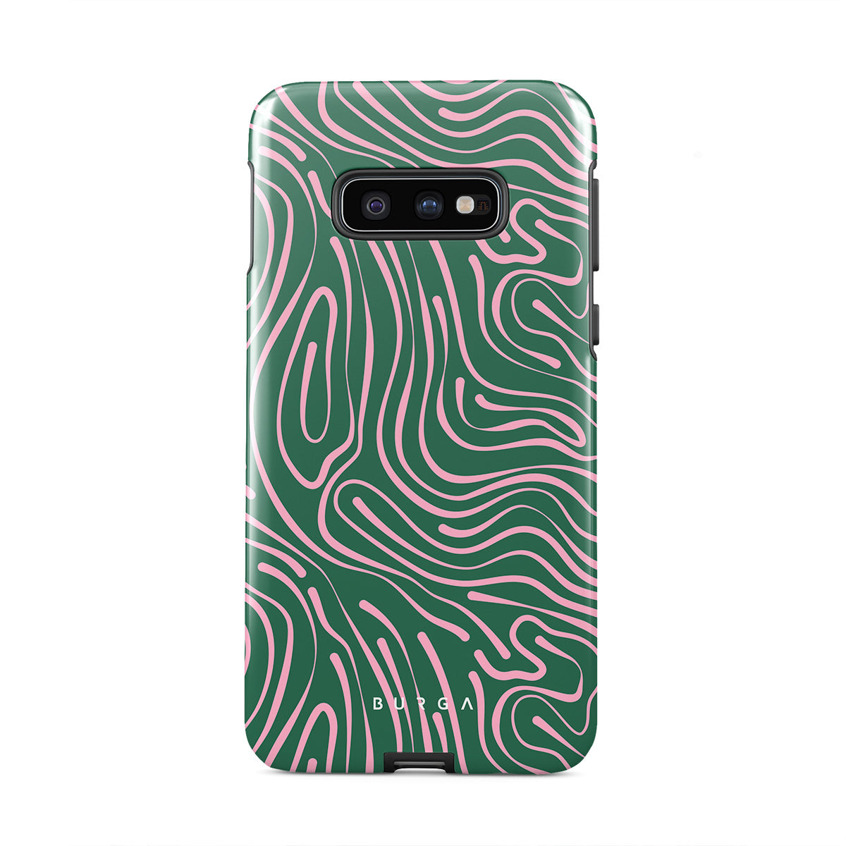 Fresh and mesmerizing, our Hawaiian Breeze Samsung Galaxy S10E phone case design combines a pastel pink wavy pattern with a crisp green background creating a refreshing look. The abstract pattern will indeed become a star in your accessorizing game, while the phone case will keep your device protected at all times!