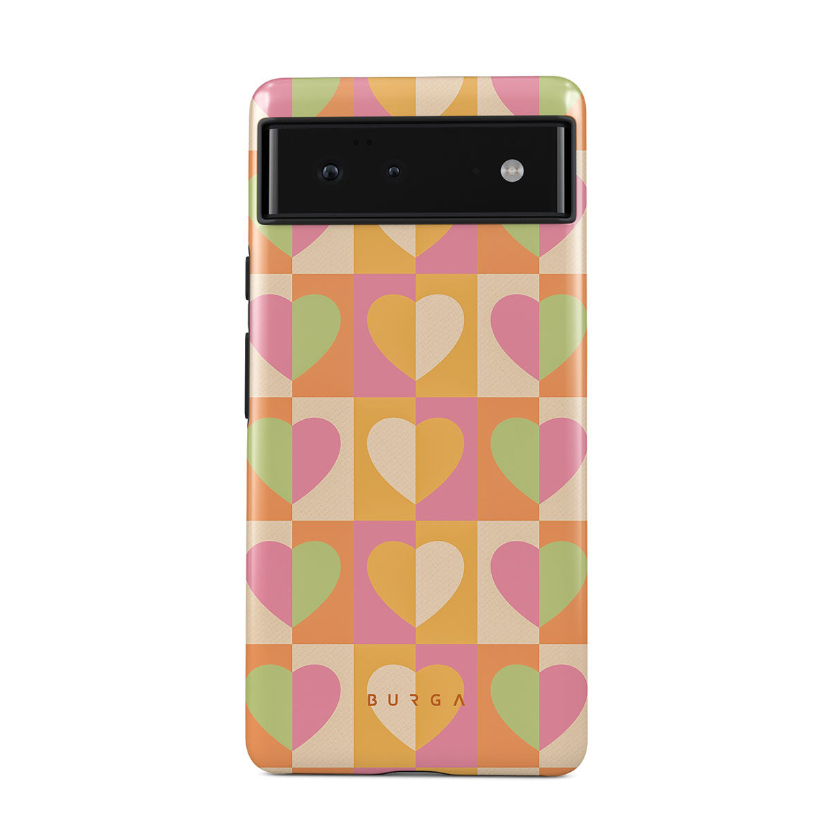 Beautifully geometrical and lovable Summer Love Google Pixel 6a phone case combines a soft pastel color scheme with a playful square heart pattern. Adding a touch of love to your style was never easier! Keep your phone as safe as you keep your heart in a cheeky checkered protective phone case!