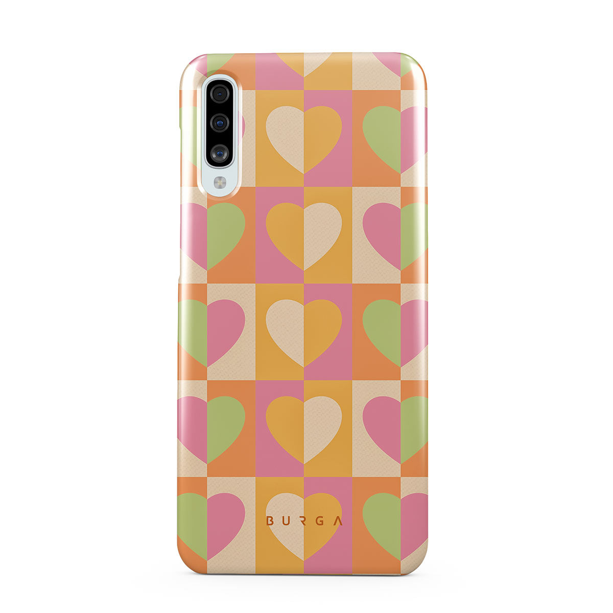 Beautifully geometrical and lovable Summer Love Samsung Galaxy A50 phone case combines a soft pastel color scheme with a playful square heart pattern. Adding a touch of love to your style was never easier! Keep your phone as safe as you keep your heart in a cheeky checkered protective phone case!