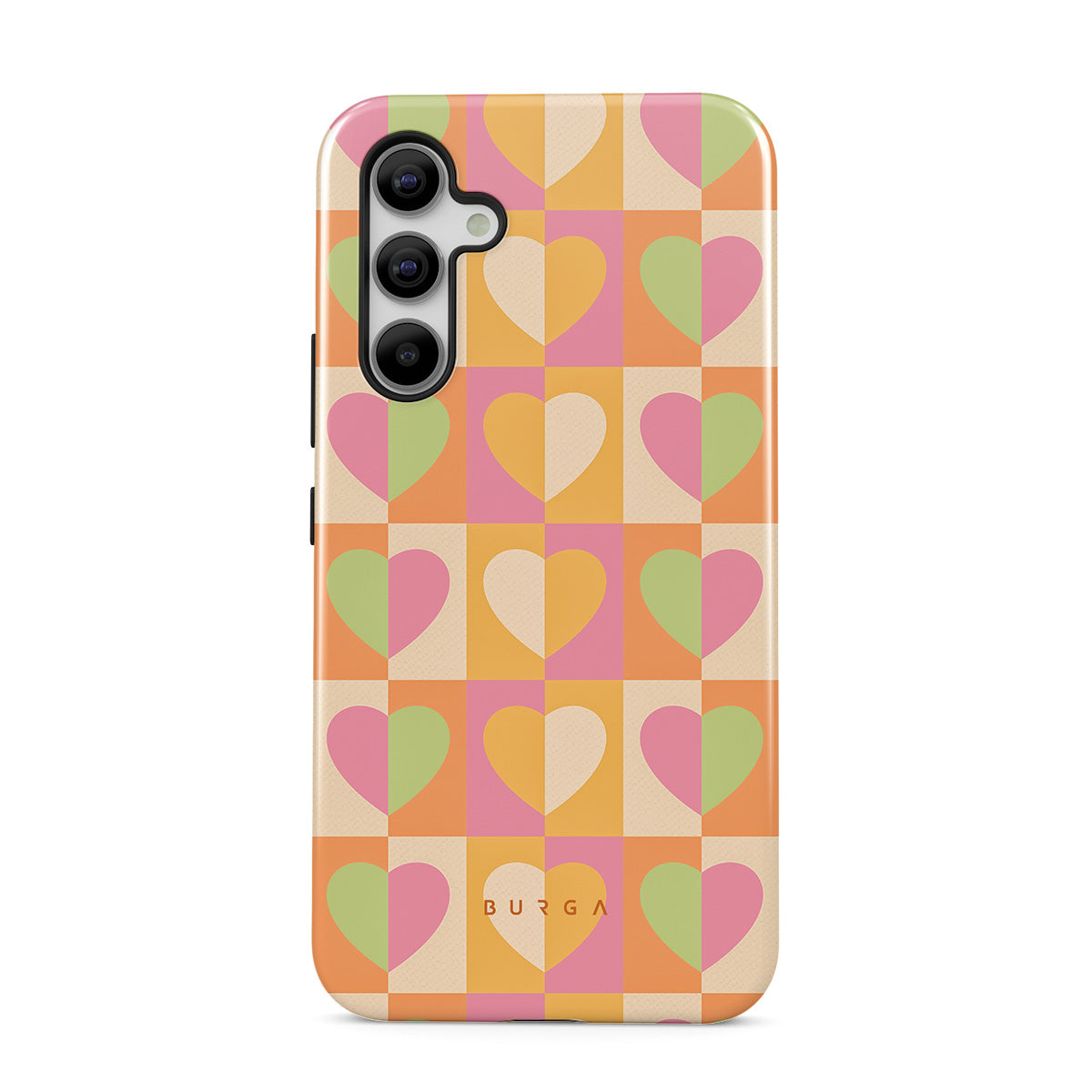 Beautifully geometrical and lovable Summer Love Samsung Galaxy A55 phone case combines a soft pastel color scheme with a playful square heart pattern. Adding a touch of love to your style was never easier! Keep your phone as safe as you keep your heart in a cheeky checkered protective phone case!