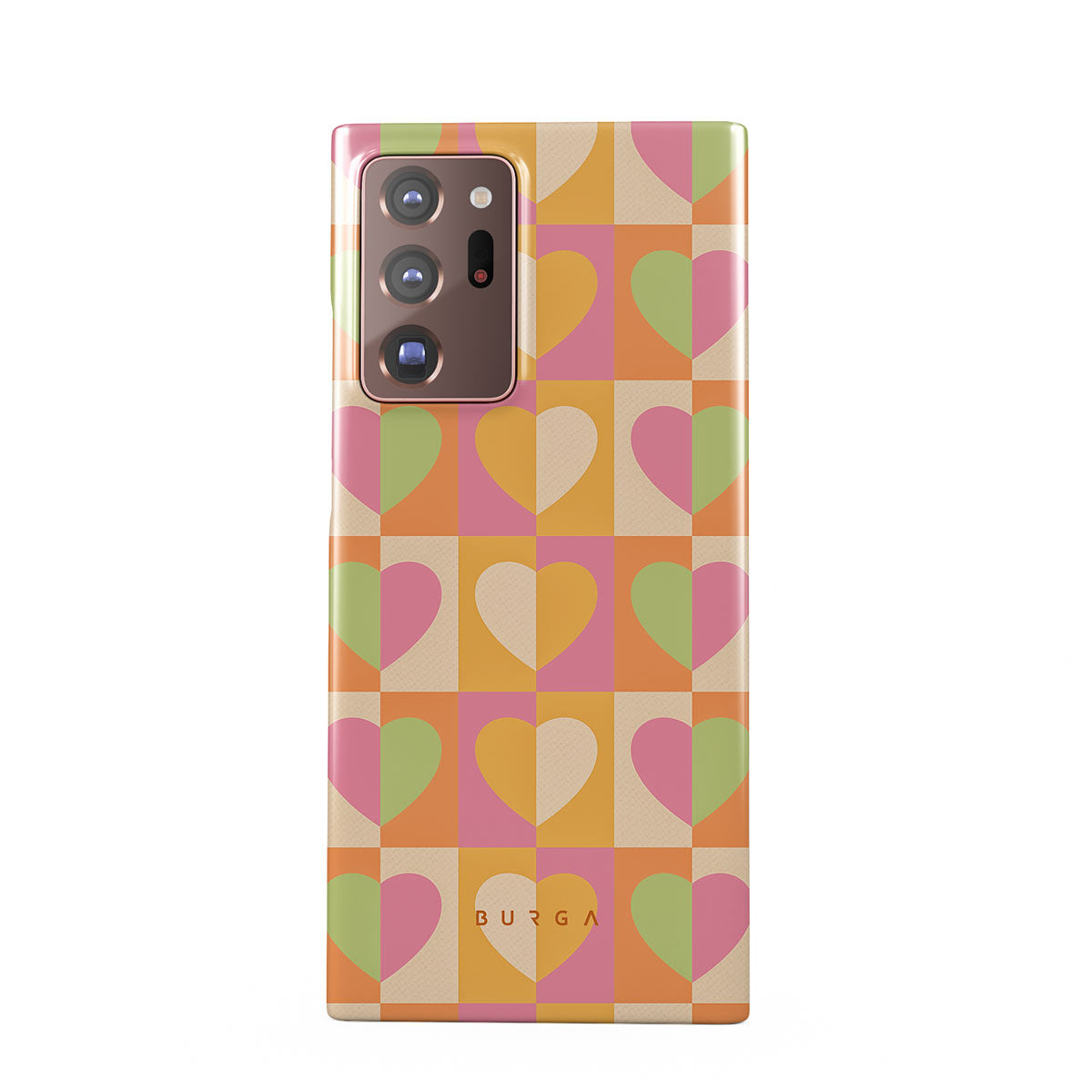 Beautifully geometrical and lovable Summer Love Samsung Galaxy Note 20 Ultra 4G / 5G phone case combines a soft pastel color scheme with a playful square heart pattern. Adding a touch of love to your style was never easier! Keep your phone as safe as you keep your heart in a cheeky checkered protective phone case!