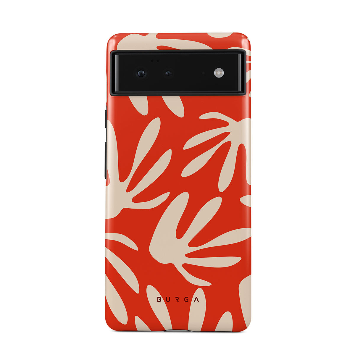 Unfolding the untamed allure of a summer sunset, this design boasts a vivid red background that sets your spirit of adventure aflame. Sprinkled across this fierce backdrop, lines of radiance dance playfully. Experience the warmth of passion and the sparkle of joy in the palm of your hand with our Heatwave Google Pixel 6a phone case.