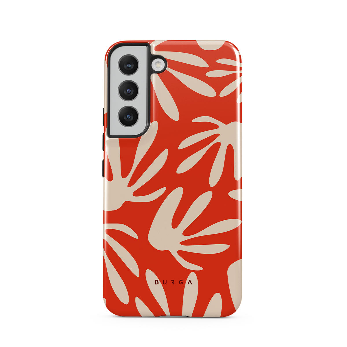Unfolding the untamed allure of a summer sunset, this design boasts a vivid red background that sets your spirit of adventure aflame. Sprinkled across this fierce backdrop, lines of radiance dance playfully. Experience the warmth of passion and the sparkle of joy in the palm of your hand with our Heatwave Samsung Galaxy S22 Plus phone case.