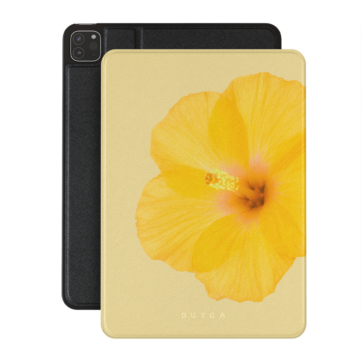 Our Hibiscus iPad Pro 12.9 (4th/3rd Gen) folio case features a striking design with a large, vibrant yellow hibiscus flower on a matching yellow background. This tropical flower pattern exudes a sense of warmth and exotic beauty, perfect for those who love nature-inspired and floral aesthetics.