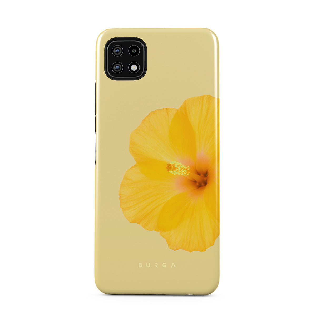 Our bright yellow Samsung Galaxy A22 5G phone case features bold, beautiful flowers that evoke a sense of nostalgia and happiness. This cheerful floral design captures the essence of joyful moments, making your device a reminder of sunny memories. Perfect for brightening up your day.