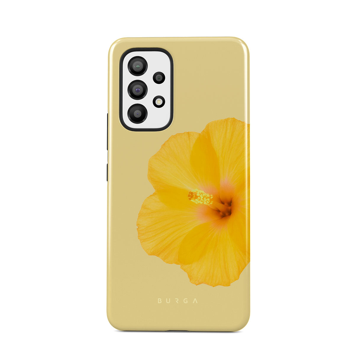 Our bright yellow Samsung Galaxy A33 phone case features bold, beautiful flowers that evoke a sense of nostalgia and happiness. This cheerful floral design captures the essence of joyful moments, making your device a reminder of sunny memories. Perfect for brightening up your day.