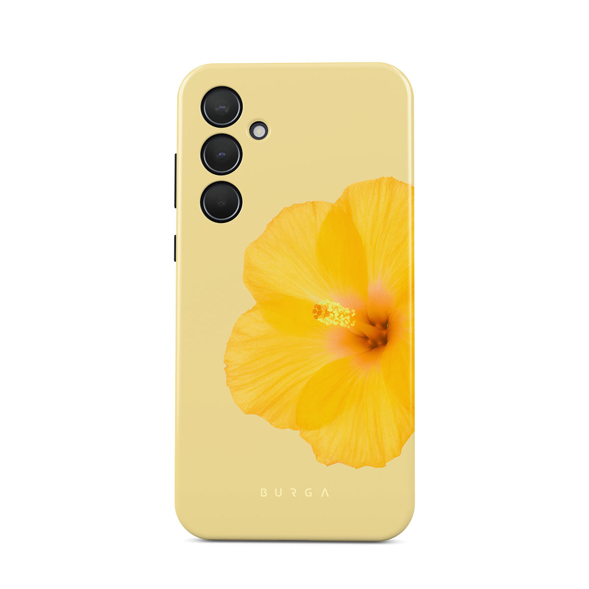 Our bright yellow Samsung Galaxy A35 phone case features bold, beautiful flowers that evoke a sense of nostalgia and happiness. This cheerful floral design captures the essence of joyful moments, making your device a reminder of sunny memories. Perfect for brightening up your day.