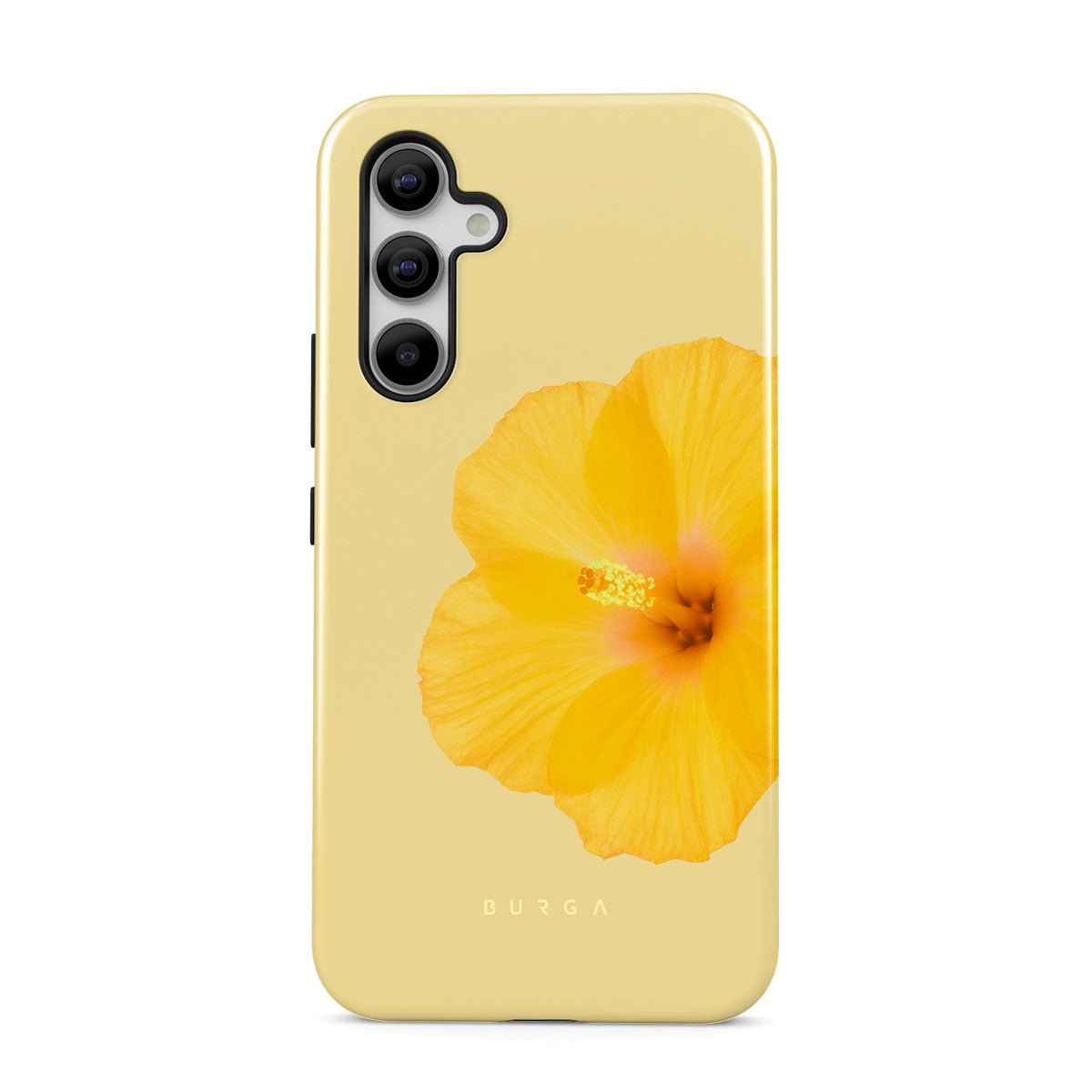 Our bright yellow Samsung Galaxy A54 phone case features bold, beautiful flowers that evoke a sense of nostalgia and happiness. This cheerful floral design captures the essence of joyful moments, making your device a reminder of sunny memories. Perfect for brightening up your day.