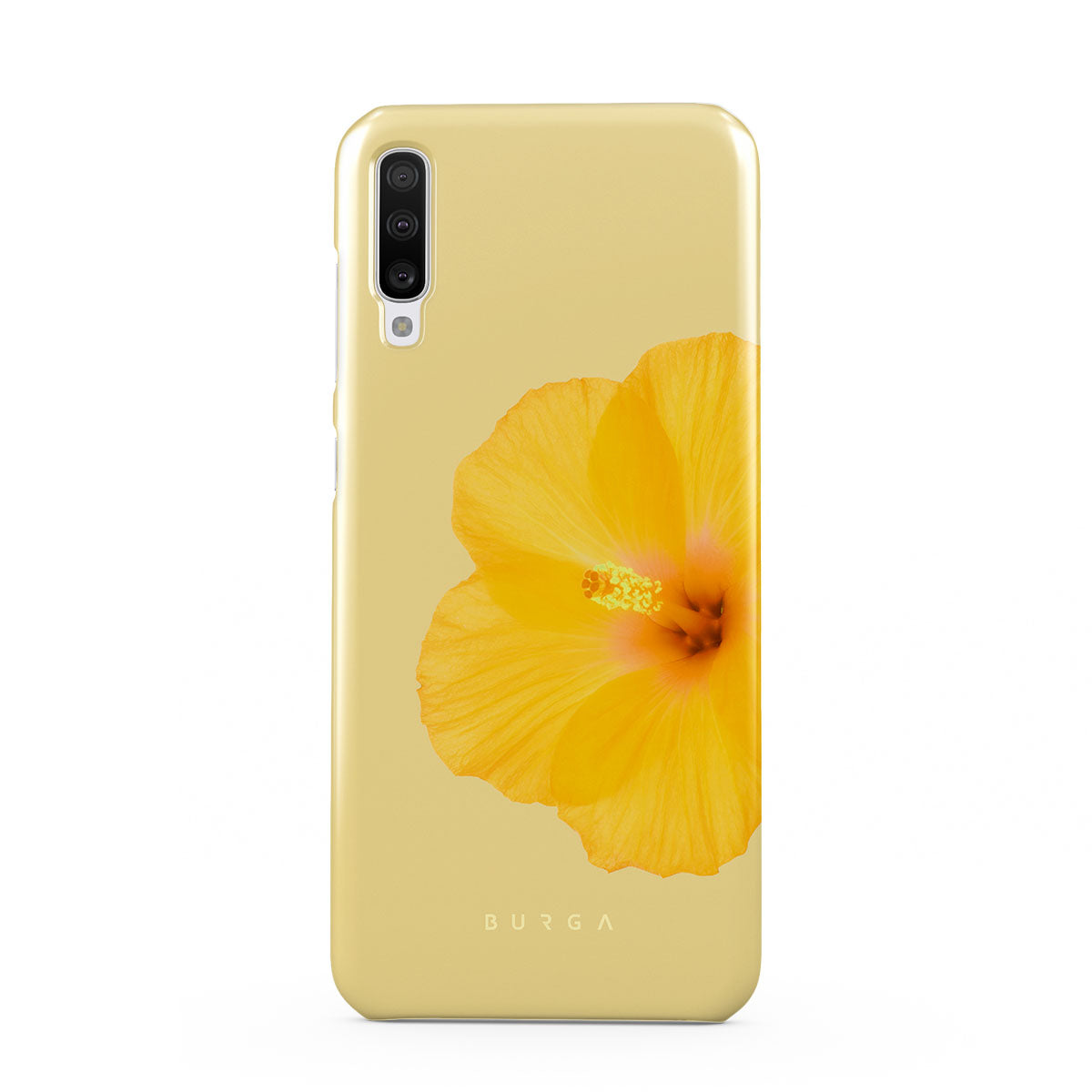 Our bright yellow Samsung Galaxy A70 phone case features bold, beautiful flowers that evoke a sense of nostalgia and happiness. This cheerful floral design captures the essence of joyful moments, making your device a reminder of sunny memories. Perfect for brightening up your day.