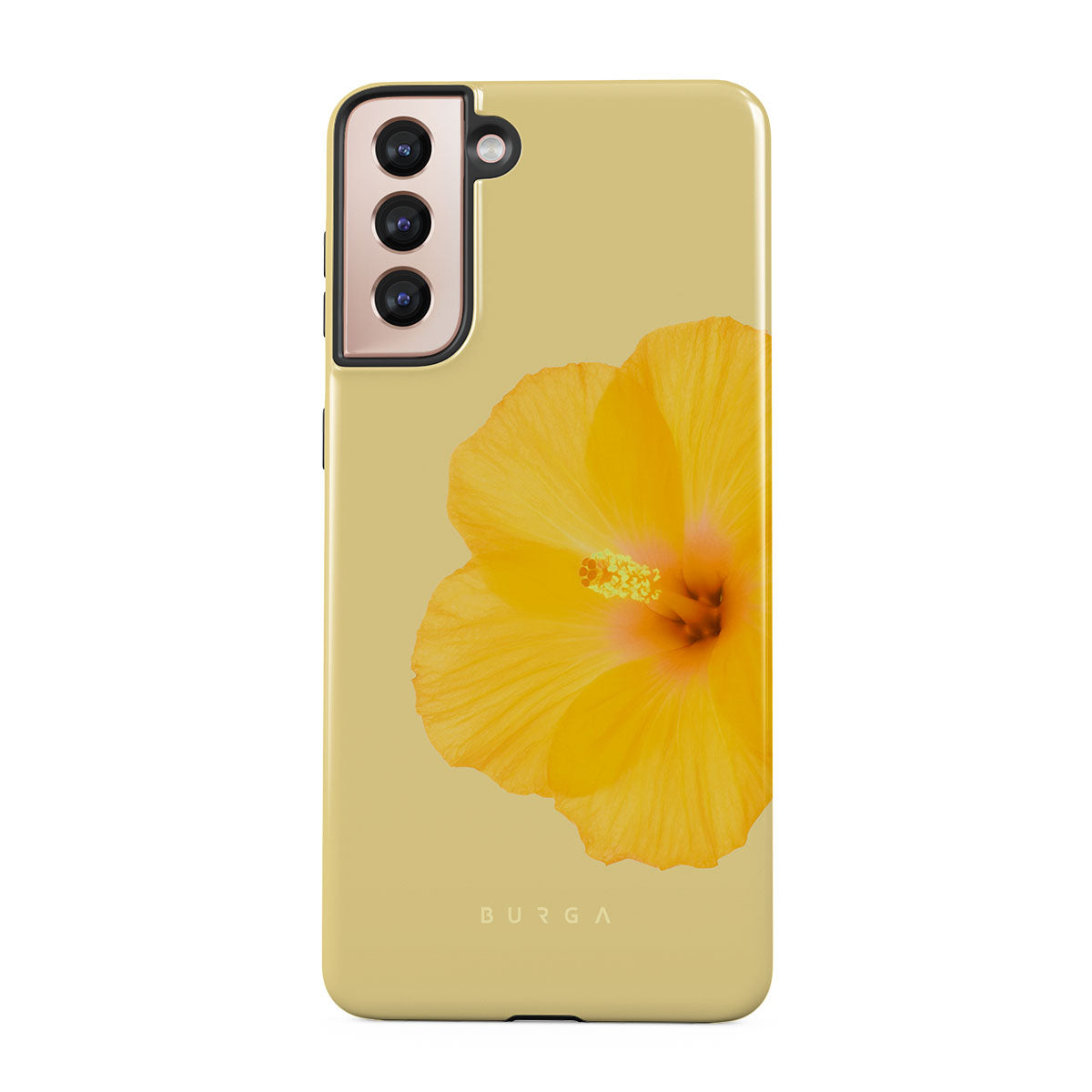 Our bright yellow Samsung Galaxy S21 Plus phone case features bold, beautiful flowers that evoke a sense of nostalgia and happiness. This cheerful floral design captures the essence of joyful moments, making your device a reminder of sunny memories. Perfect for brightening up your day.