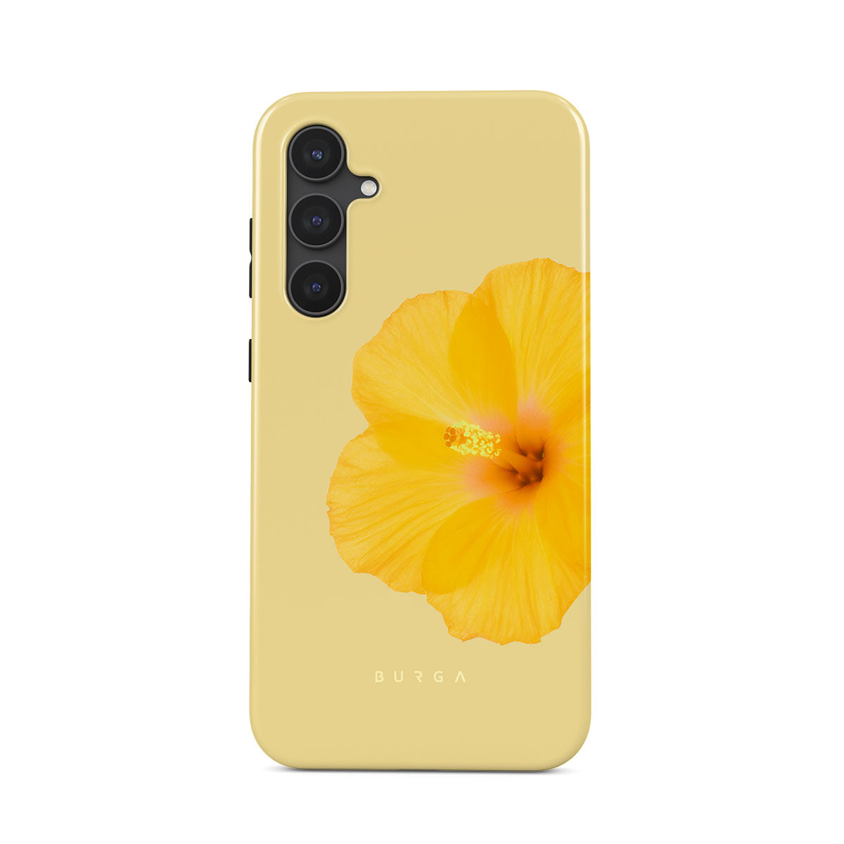 Our bright yellow Samsung Galaxy S23 FE phone case features bold, beautiful flowers that evoke a sense of nostalgia and happiness. This cheerful floral design captures the essence of joyful moments, making your device a reminder of sunny memories. Perfect for brightening up your day.
