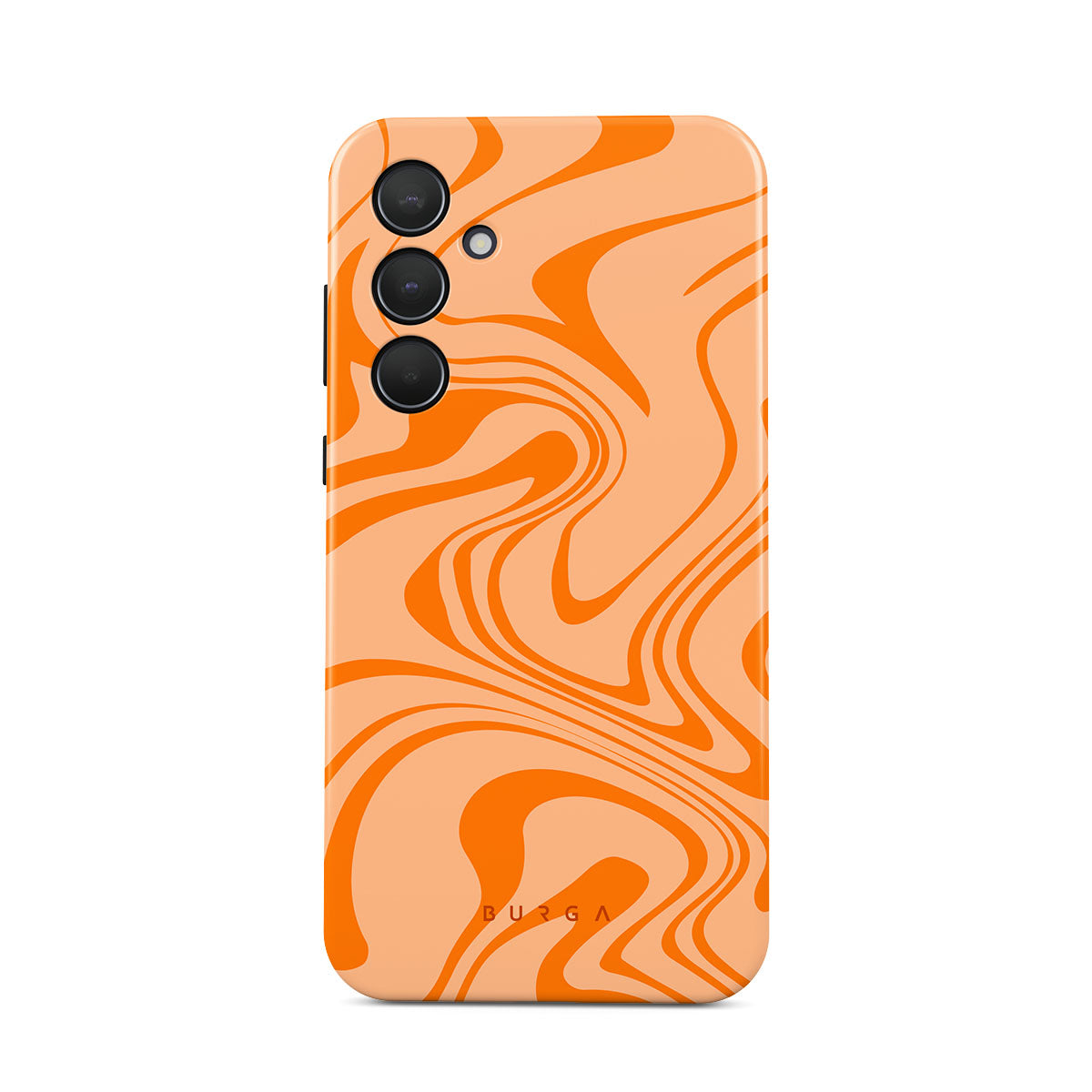 Add some retro vibes to your modern device with our High Vibrations Samsung Galaxy A35 phone case. Bright orange allows the darker color swirls to release all that groove energy! This cheerful design is a true showstopper.