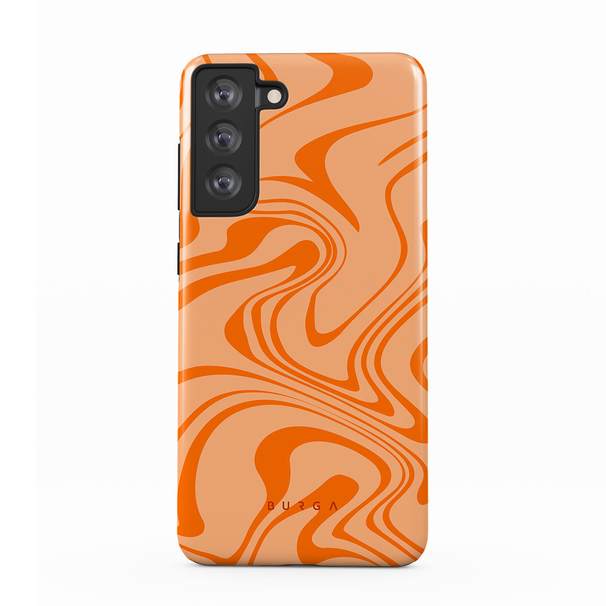 Add some retro vibes to your modern device with our High Vibrations Samsung Galaxy S21 FE phone case. Bright orange allows the darker color swirls to release all that groove energy! This cheerful design is a true showstopper.