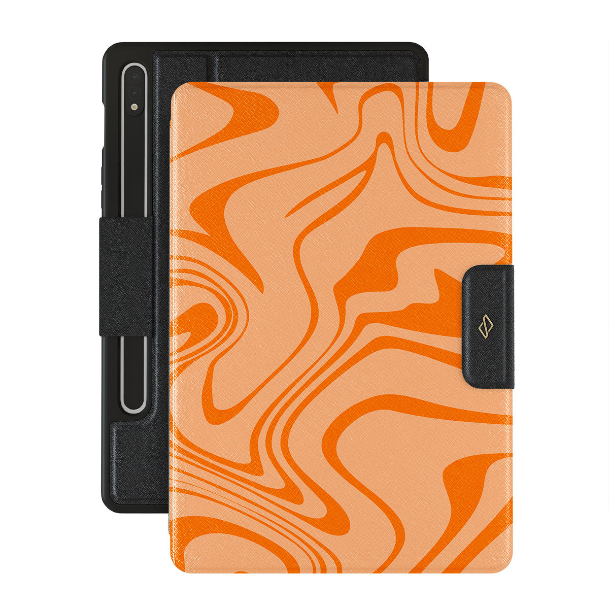 Add some retro vibes to your modern device with our High Vibrations Samsung Galaxy Tab S10+ folio case. Bright orange allows the darker color swirls to release all that groove energy! This cheerful design is a true showstopper.
