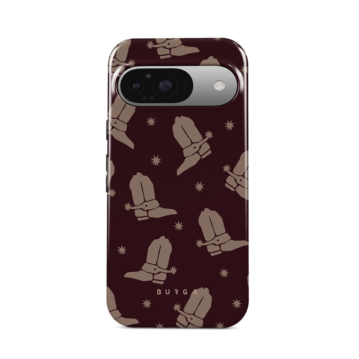 Say Howdy to this charming Google Pixel 9 phone case design. Cowboy boots and stars dance across a deep brown background, celebrating the essence of western life. Perfect for those who embrace their free spirit.