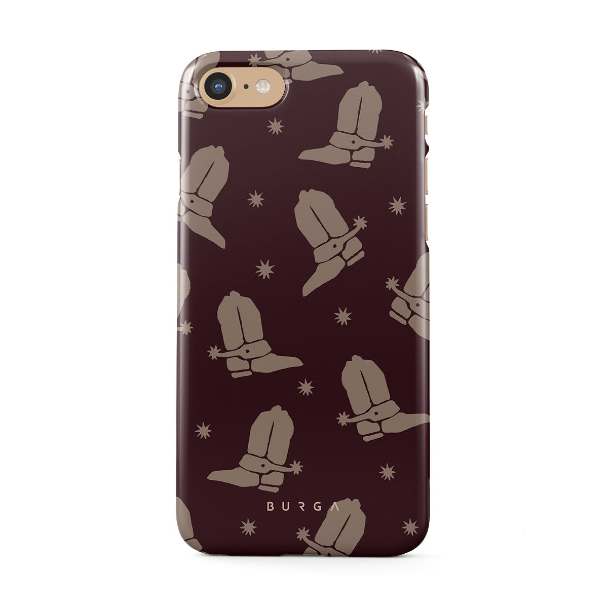 Say Howdy to this charming iPhone 7 / iPhone 8 phone case design. Cowboy boots and stars dance across a deep brown background, celebrating the essence of western life. Perfect for those who embrace their free spirit.