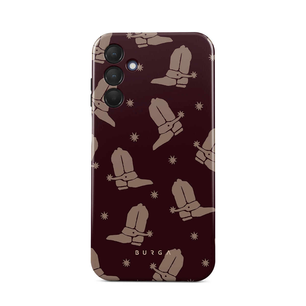 Say Howdy to this charming Samsung Galaxy A15 4G / 5G phone case design. Cowboy boots and stars dance across a deep brown background, celebrating the essence of western life. Perfect for those who embrace their free spirit.