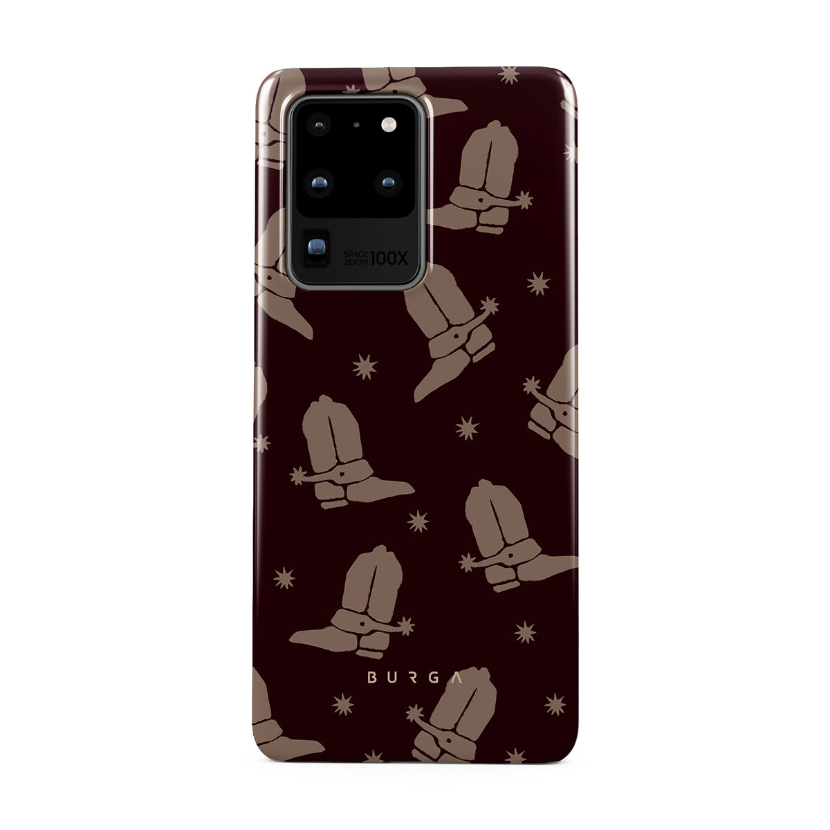 Say Howdy to this charming Samsung Galaxy S20 Ultra 4G / 5G phone case design. Cowboy boots and stars dance across a deep brown background, celebrating the essence of western life. Perfect for those who embrace their free spirit.