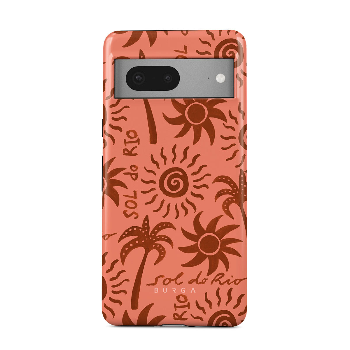 Drawn in the sand with someone’s leftover popsicle stick. Scribbly symbols and a sunburned palette that whisper “let’s not go back yet.” That's the Ipanema Google Pixel 7a phone case design.