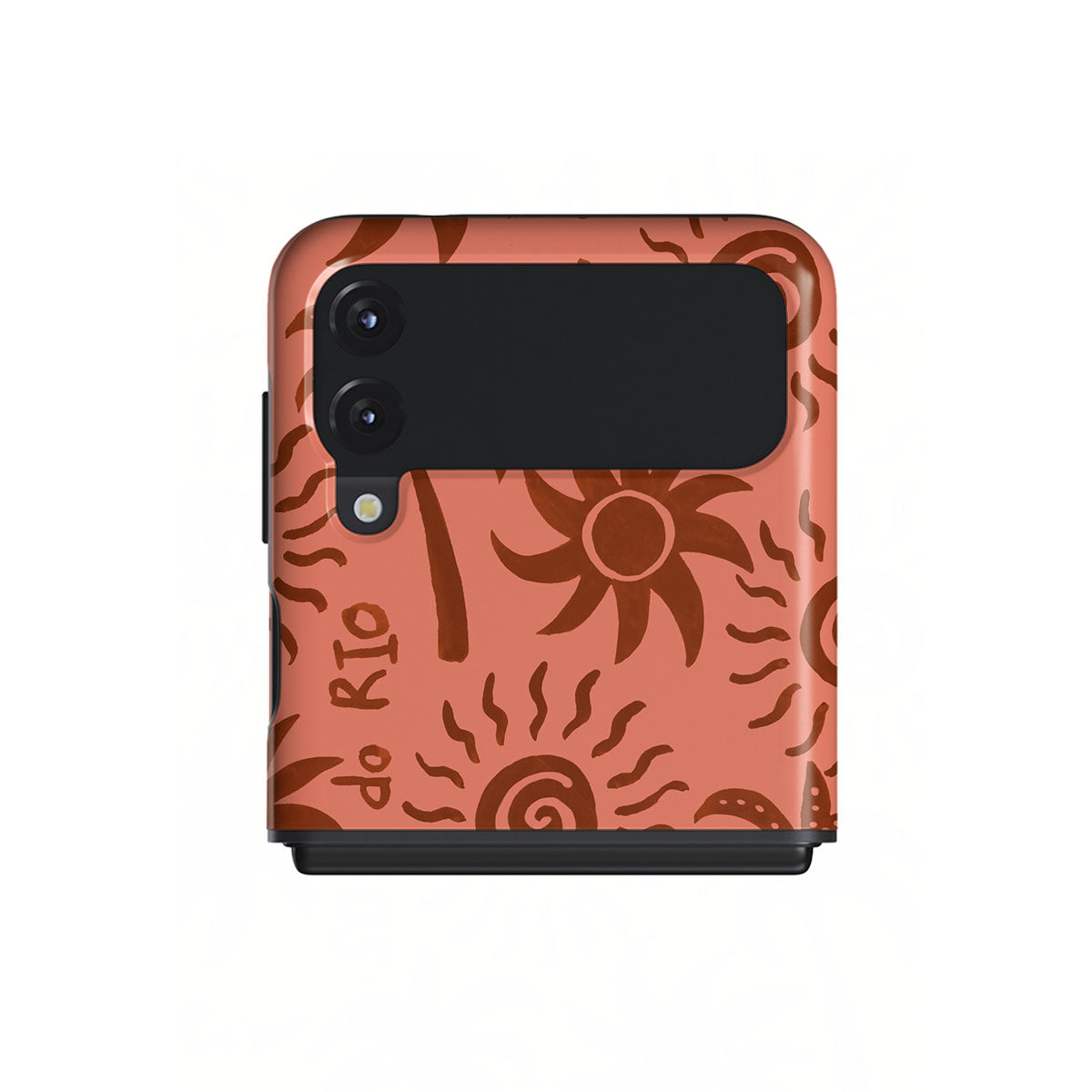 Drawn in the sand with someone’s leftover popsicle stick. Scribbly symbols and a sunburned palette that whisper “let’s not go back yet.” That's the Ipanema Samsung Galaxy Z Flip 3 phone case design.