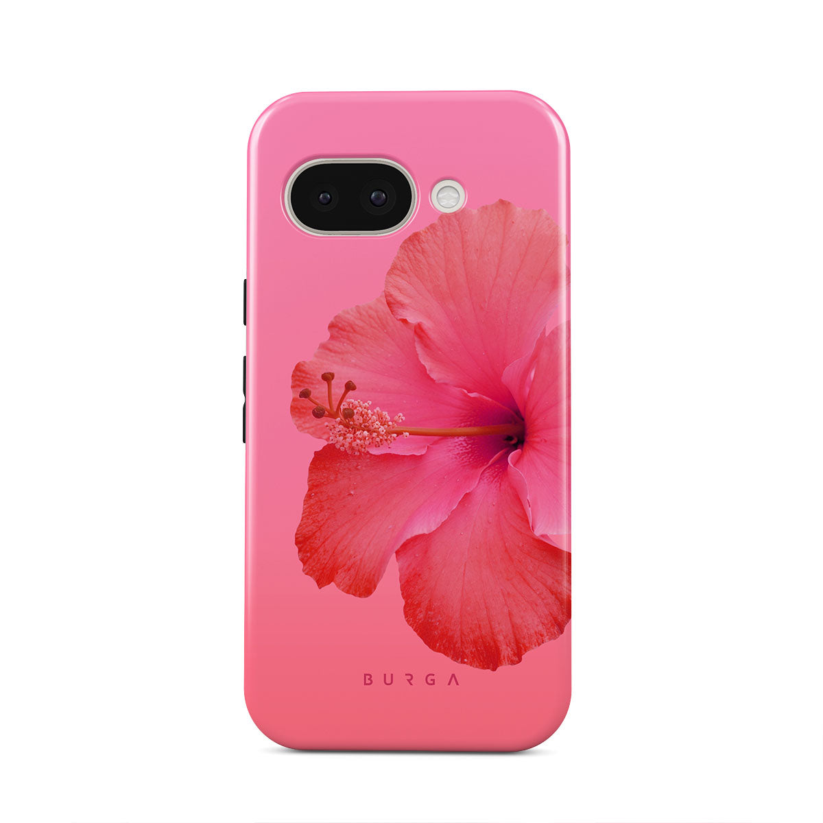 Our Island Girl Google Pixel 9a phone case design bursts with the fiery red of a hibiscus in full bloom against a dreamy pink backdrop. Perfect for those who embody the spirit of a sun-kissed island retreat.