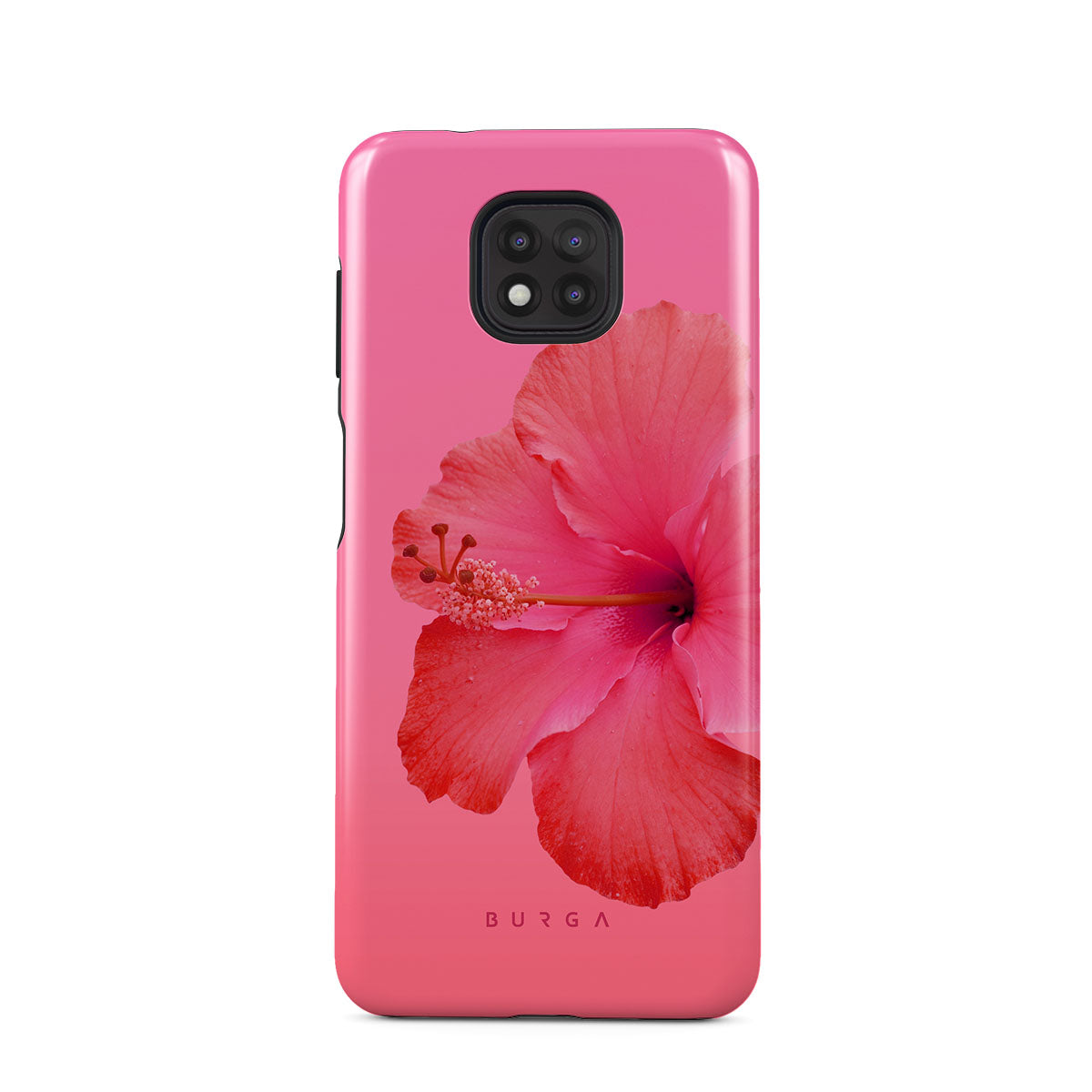 Our Island Girl Motorola Moto G Power 2021 phone case design bursts with the fiery red of a hibiscus in full bloom against a dreamy pink backdrop. Perfect for those who embody the spirit of a sun-kissed island retreat.