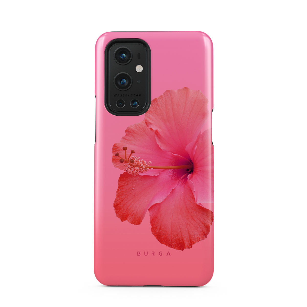 Our Island Girl OnePlus 9 Pro phone case design bursts with the fiery red of a hibiscus in full bloom against a dreamy pink backdrop. Perfect for those who embody the spirit of a sun-kissed island retreat.