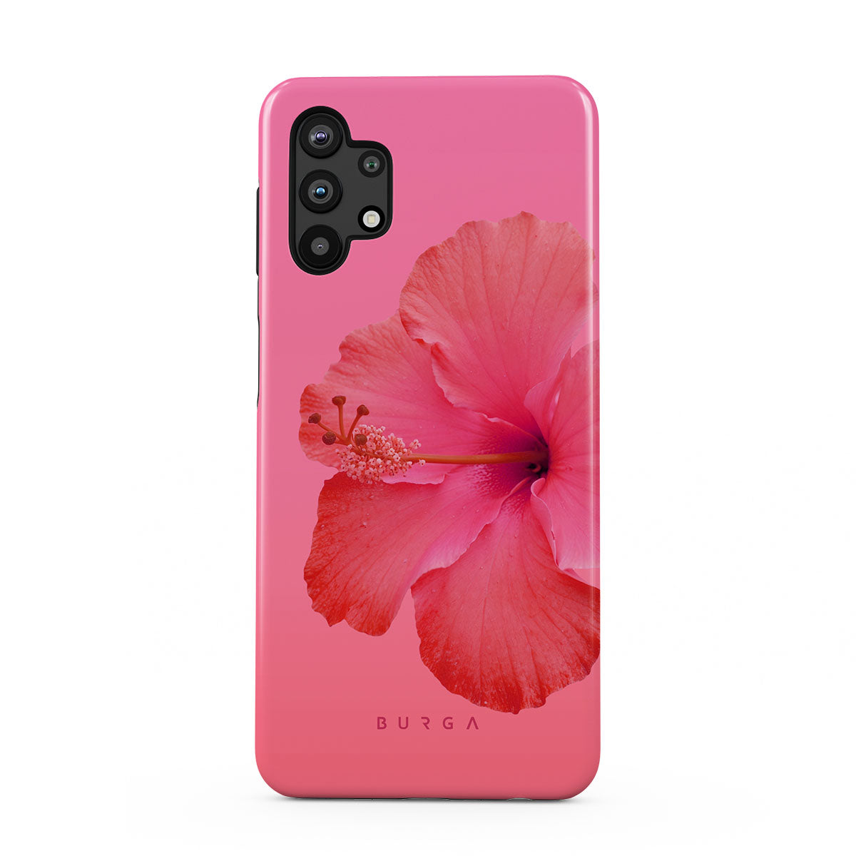 Our Island Girl Samsung Galaxy A32 5G phone case design bursts with the fiery red of a hibiscus in full bloom against a dreamy pink backdrop. Perfect for those who embody the spirit of a sun-kissed island retreat.
