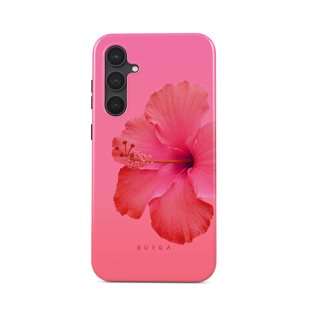 Our Island Girl Samsung Galaxy S23 FE phone case design bursts with the fiery red of a hibiscus in full bloom against a dreamy pink backdrop. Perfect for those who embody the spirit of a sun-kissed island retreat.