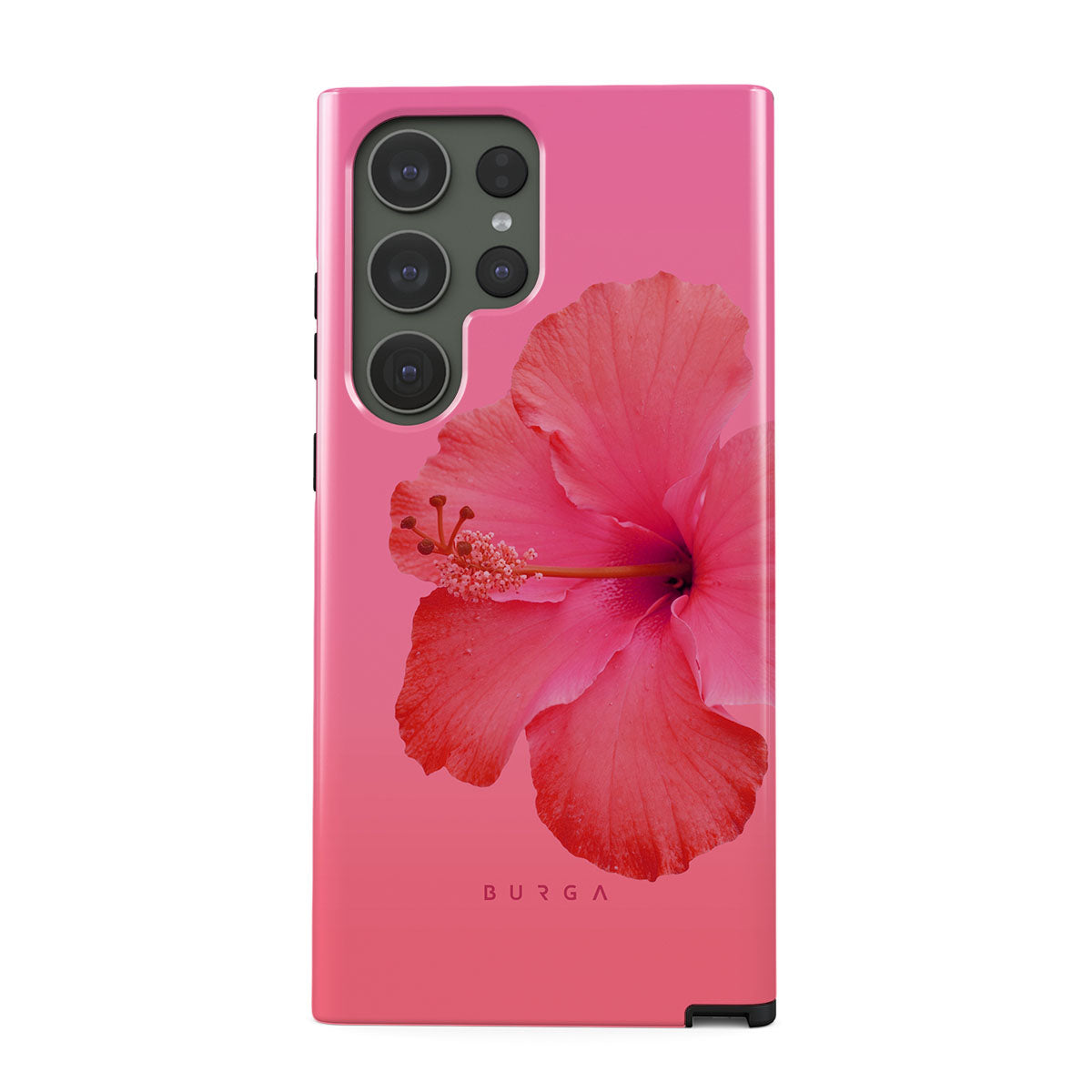 Our Island Girl Samsung Galaxy S23 Ultra phone case design bursts with the fiery red of a hibiscus in full bloom against a dreamy pink backdrop. Perfect for those who embody the spirit of a sun-kissed island retreat.