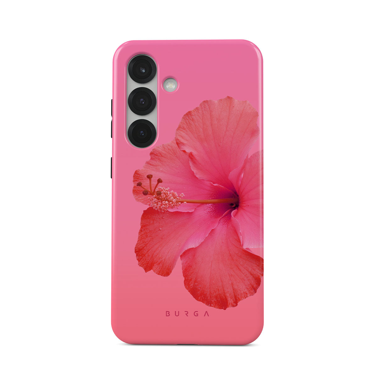 Our Island Girl Samsung Galaxy S25 phone case design bursts with the fiery red of a hibiscus in full bloom against a dreamy pink backdrop. Perfect for those who embody the spirit of a sun-kissed island retreat.