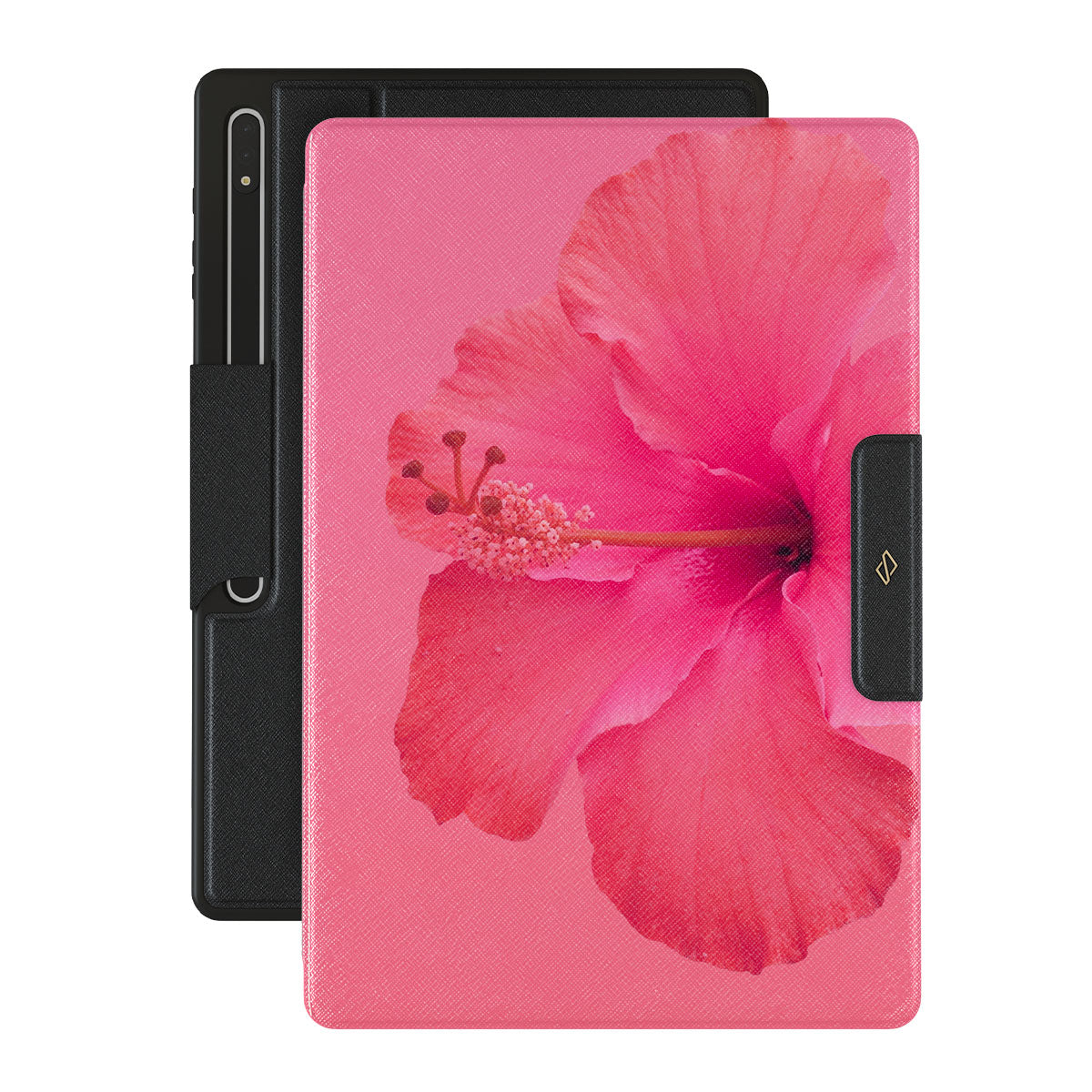 Our Island Girl Samsung Galaxy Tab S10 Ultra folio case design bursts with the fiery red of a hibiscus in full bloom against a dreamy pink backdrop. Perfect for those who embody the spirit of a sun-kissed island retreat.