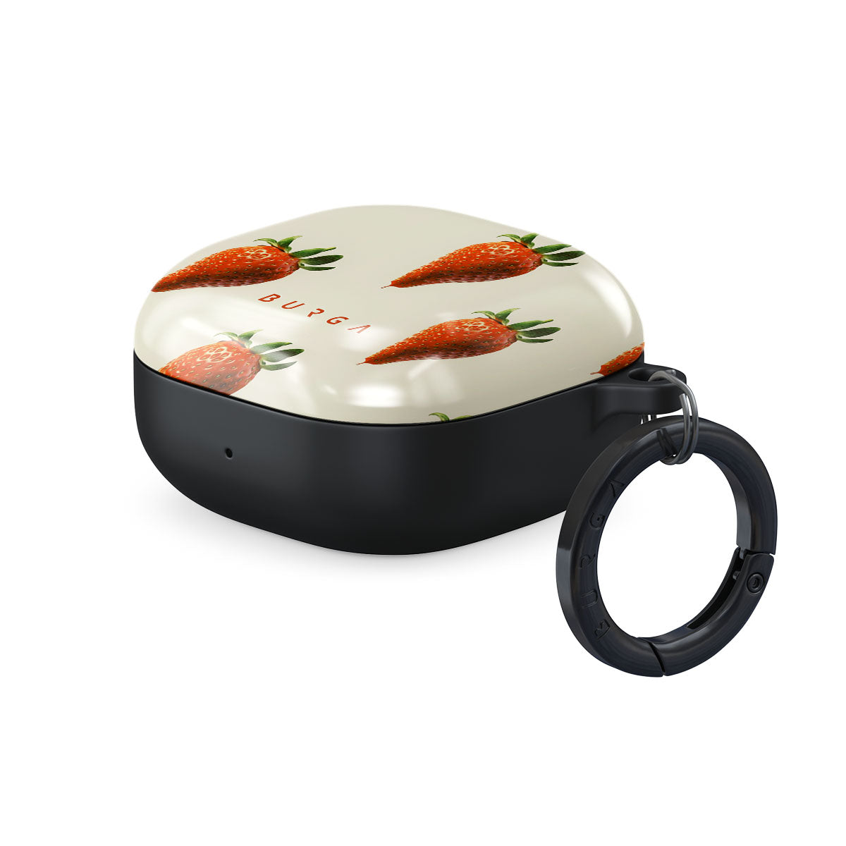 This design features: strawberry.