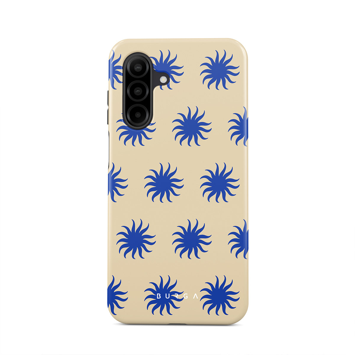 Immerse yourself in the vibrant spirit of the tropics with our La Playa Samsung Galaxy A26 5G phone case. This design boasts a warm, sandy beige base highlighted by striking blue motifs, reminiscent of the breezy Caribbean islands. It’s a stylish celebration of coastal beauty.