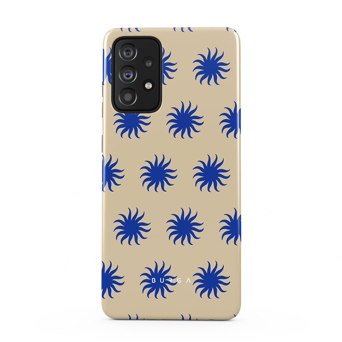 Immerse yourself in the vibrant spirit of the tropics with our La Playa Samsung Galaxy A52 / A52S 4G / 5G phone case. This design boasts a warm, sandy beige base highlighted by striking blue motifs, reminiscent of the breezy Caribbean islands. It’s a stylish celebration of coastal beauty.