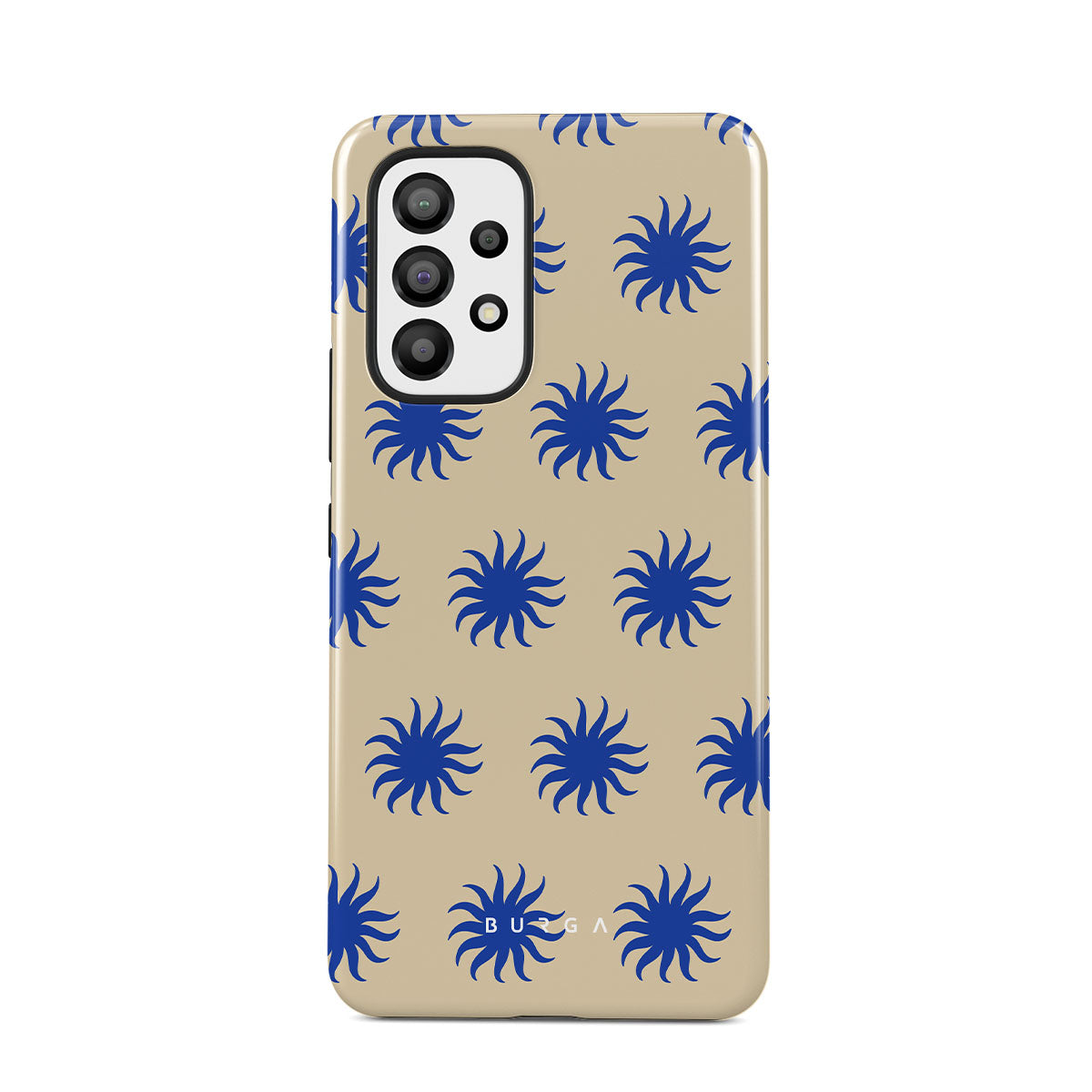 Immerse yourself in the vibrant spirit of the tropics with our La Playa Samsung Galaxy A53 phone case. This design boasts a warm, sandy beige base highlighted by striking blue motifs, reminiscent of the breezy Caribbean islands. It’s a stylish celebration of coastal beauty.